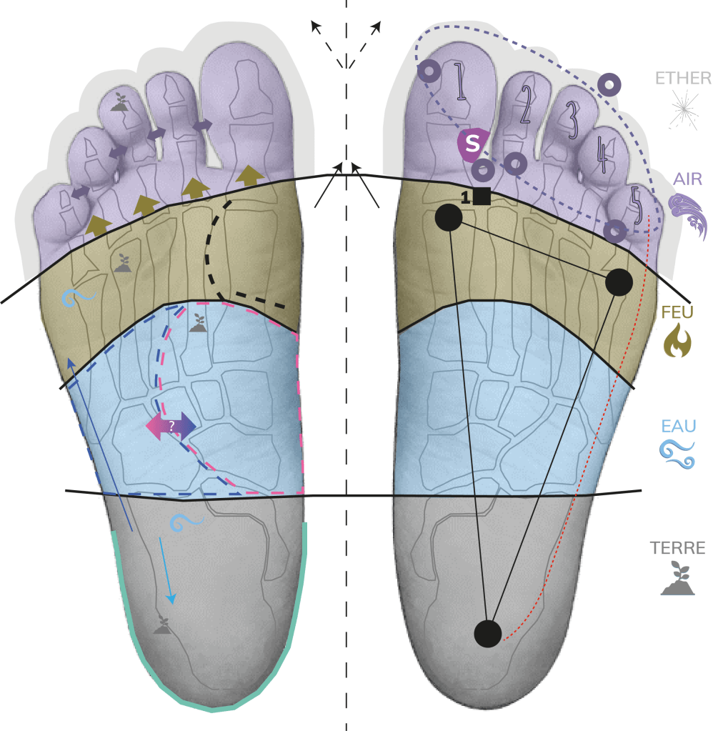 Oui, car une lecture psychologique approfondie de vos pieds à la lueur des doshas (Kapha, Pitta et Vata) déréglés, des 5 éléments (Terre, Eau, Feu, Air, Ether) et des qualités, les gunas, vont me guider pour composer un soin sur mesure pour vous… Cette lecture s’appuie sur l’observation de vos pieds (forme, aspects, déformations, rugosités) et sur vos empreintes, et se base sur une connaissance de la psychée occidentale et ayurvédique.